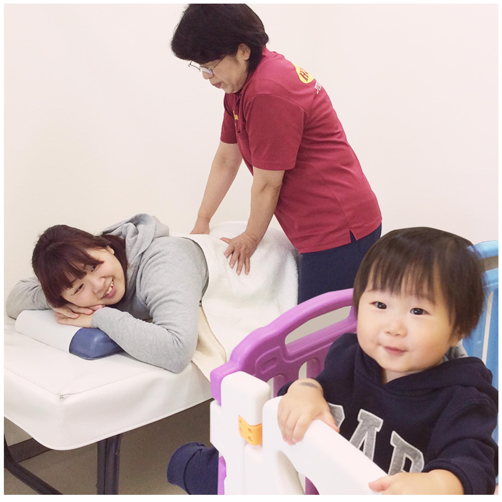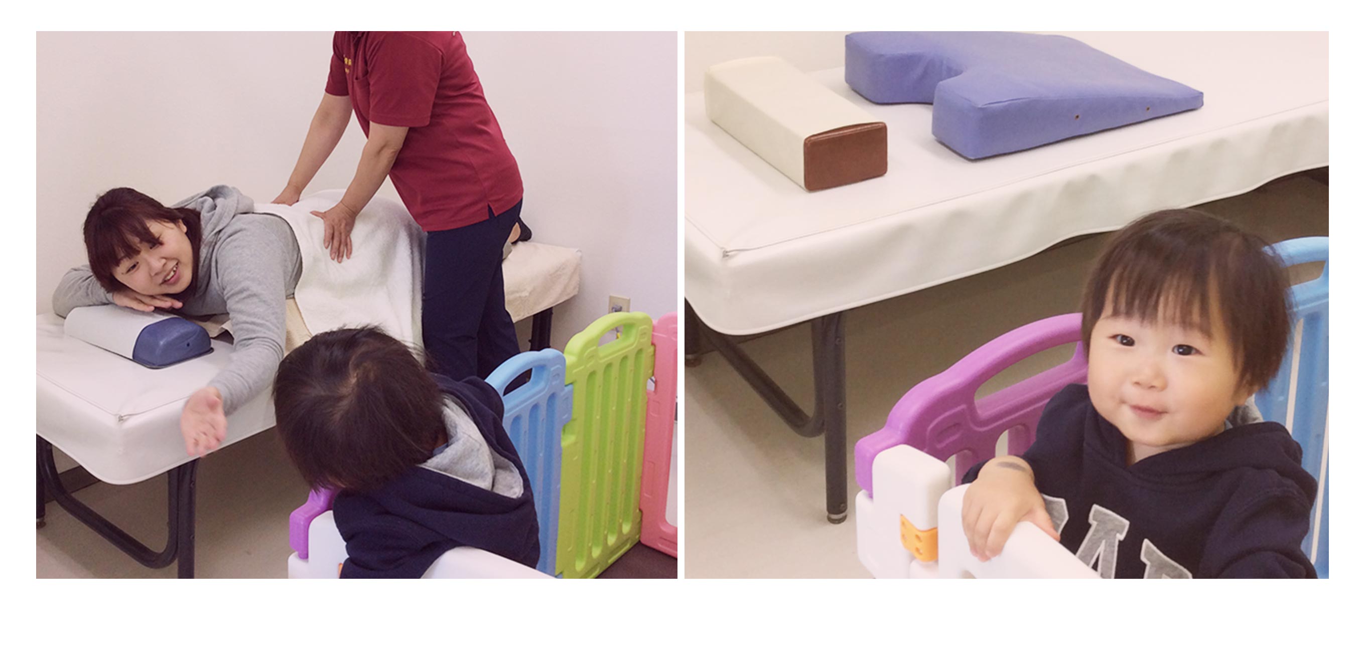 産後ケアのお母さまなど、小さなお子様を見ながらじっくり治療を受けられ安心です。日頃抱っこをしていて肩・腰が痛い方や産後骨盤の歪みが気になる方に最適です。